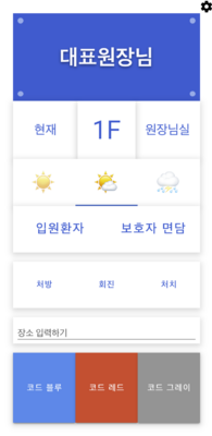 재실, 원외 등 ''' 원장님 휴대폰에 블루투스 테그를 달고, 병원내 주요 위치에 테그를 검색하는 게이트웨이를 설치합니다. '''